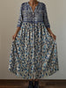 Retro boho virág művészet nyomtatás vintage elegáns v-nyak gomb fel hosszú ujjú midi ruha