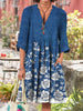 Retro boho virág művészet nyomtatás vintage elegáns v-nyak pamut hosszú ujjú midi ruha