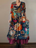 Retro boho virágos etnikai nyomtatás vintage v-nyak dupla hemline pamut hosszú ujjú midi ruha
