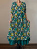 Retro boho virágos etnikai nyomtatás vintage v-nyak dupla hemline pamut hosszú ujjú midi ruha