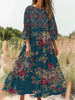 Retro boho virágos nyomtatás vintage elegáns kerek nyak pamut hosszú ujjú midi ruha