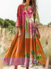 Retro boho virágos nyomtatás vintage elegáns kerek nyak pamut hosszú ujjú midi ruha