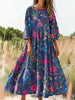 Retro boho virágos nyomtatás vintage elegáns kerek nyak pamut hosszú ujjú midi ruha