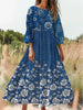 Retro boho virágos nyomtatás vintage elegáns kerek nyak pamut hosszú ujjú midi ruha