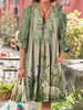 Retro juh boho virágos nyomtatás vintage elegáns v-nyak pamut hosszú ujjú midi ruha