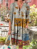 Retro méh boho virágos nyomtatás vintage elegáns v-nyak pamut hosszú ujjú midi ruha