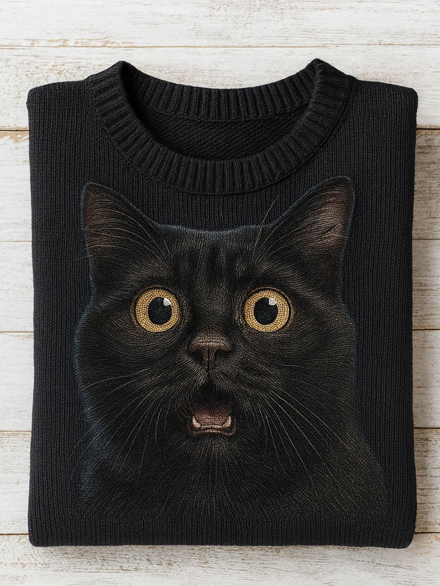 Vintage absztrakt állat nyomtatás alkalmi pulóver
