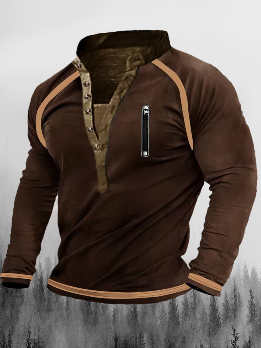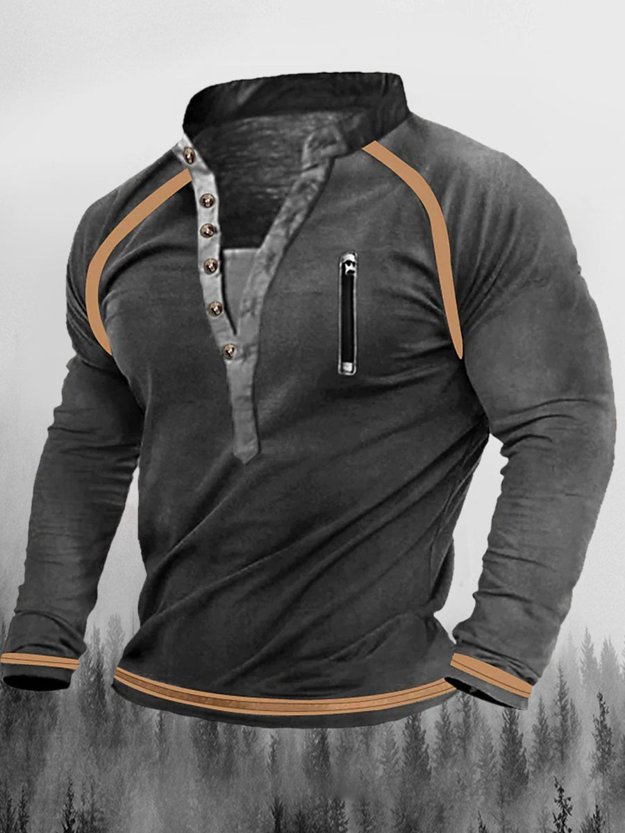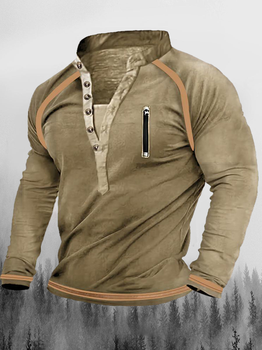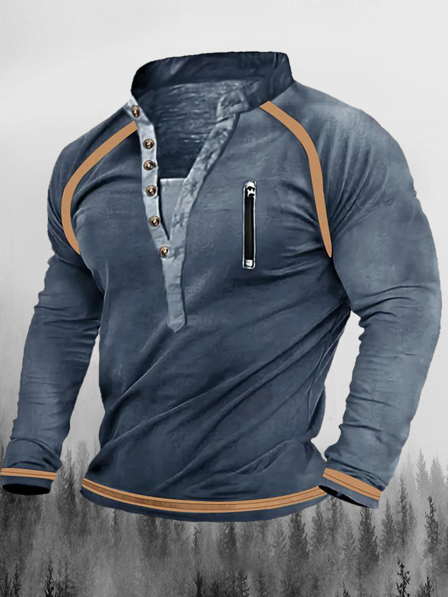 Vintage cipzáras varrás nyomtatott váltó gomb henry nyakörv megvastagodott pulóver