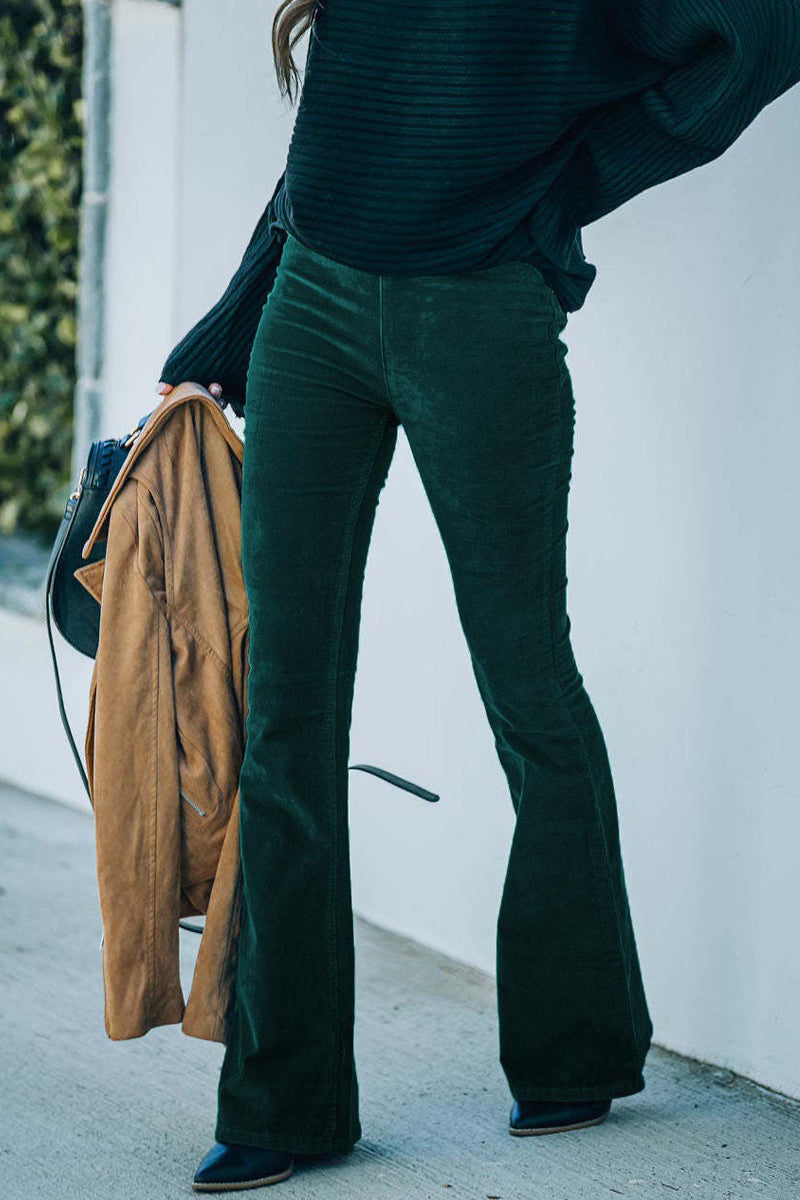 Női egyszínű magas derék slim fit corduroy alkalmi nadrág
