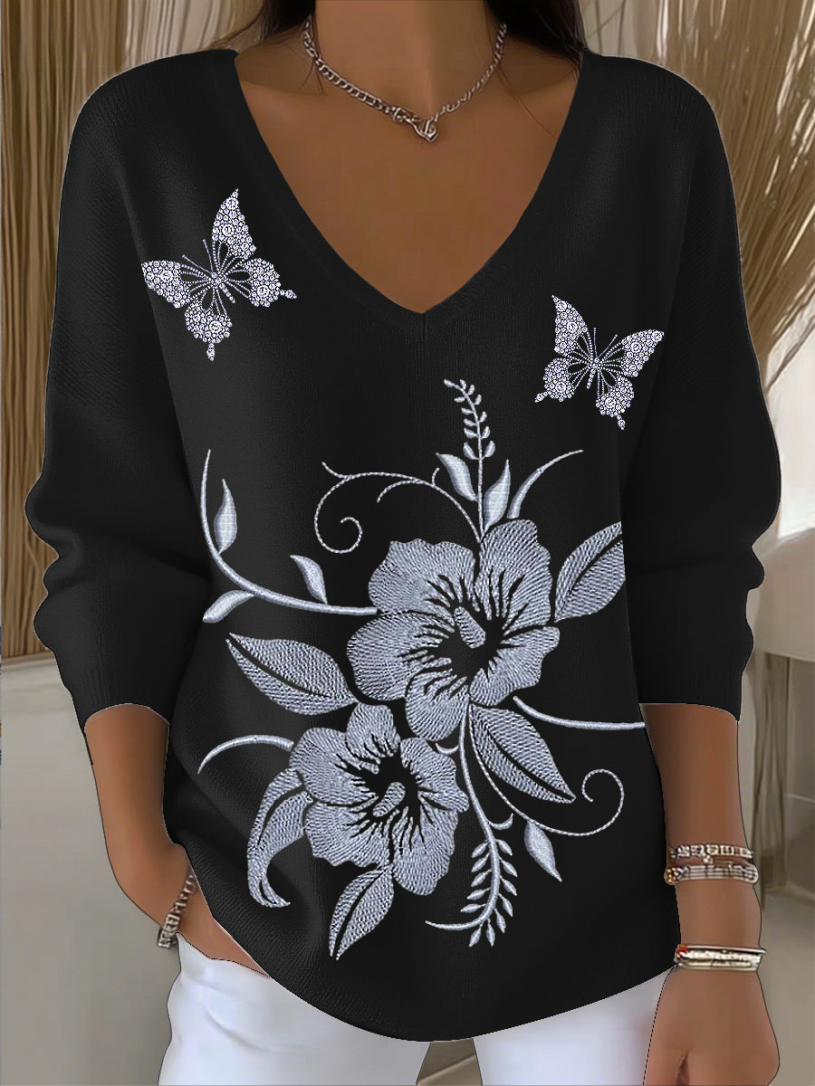 Női vintage pillangó virágos art v-nyak felső
