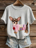 Női művészi állat nyomtatás kényelmes kötött rövid ujjú felső