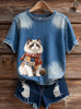 Női művészi állat nyomtatás kényelmes kötött rövid ujjú felső