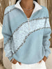 Női stílusos kék leopárd palántos állvány-nyakörv pulóver
