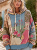 Női vintage virágos nyomtatás kényelem csuklyás pulóver