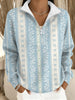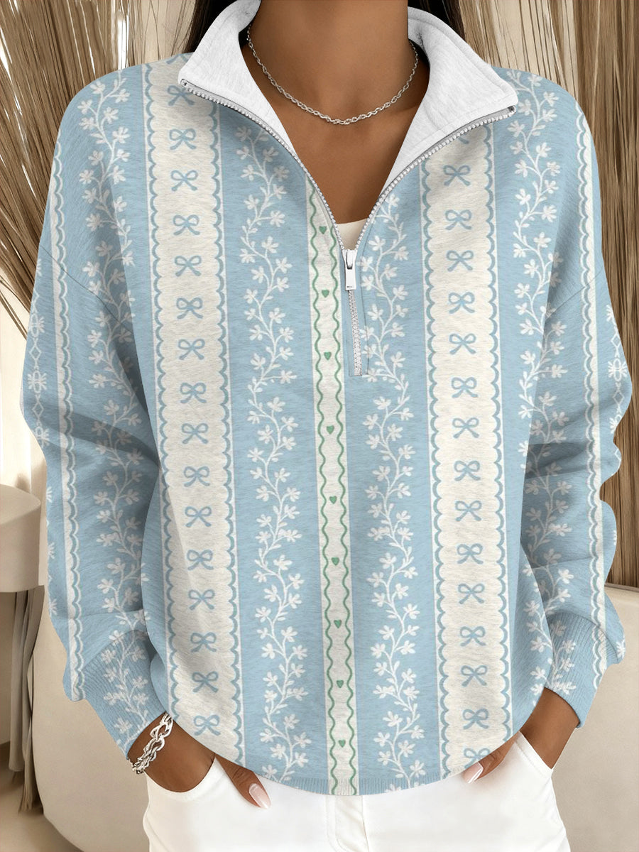 Női finom kék íj & virágos állvány-nyakörv pulóver
