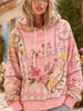Női vintage virágos nyomtatás kényelem csuklyás pulóver