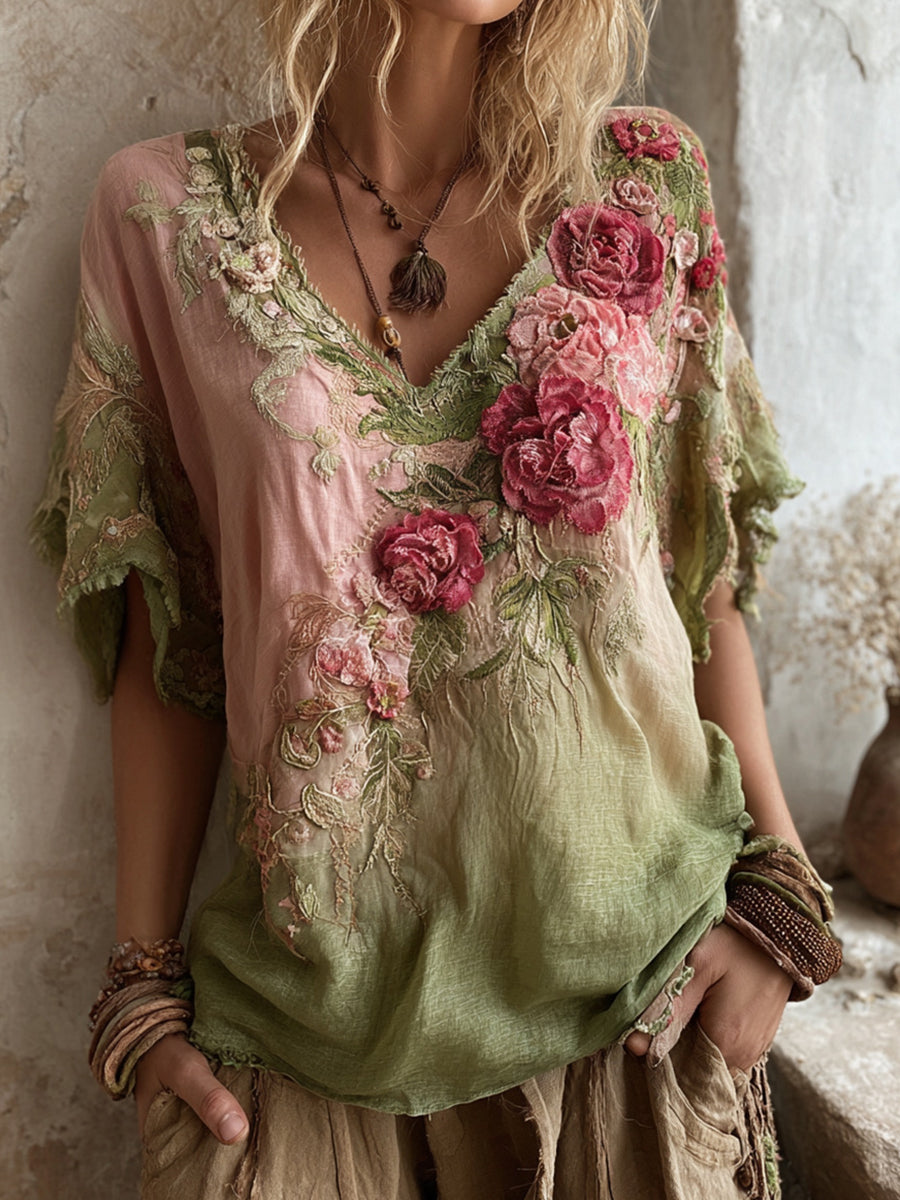 Női retro bohém virágos top