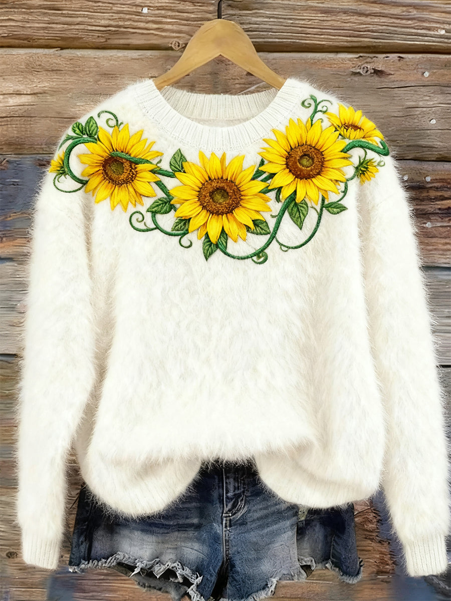 Női retro karácsonyi virágos művészet nyomtatás kényelmes flanel pulóver
