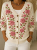 Női vintage virágos nyomtatás gomb kardigán
