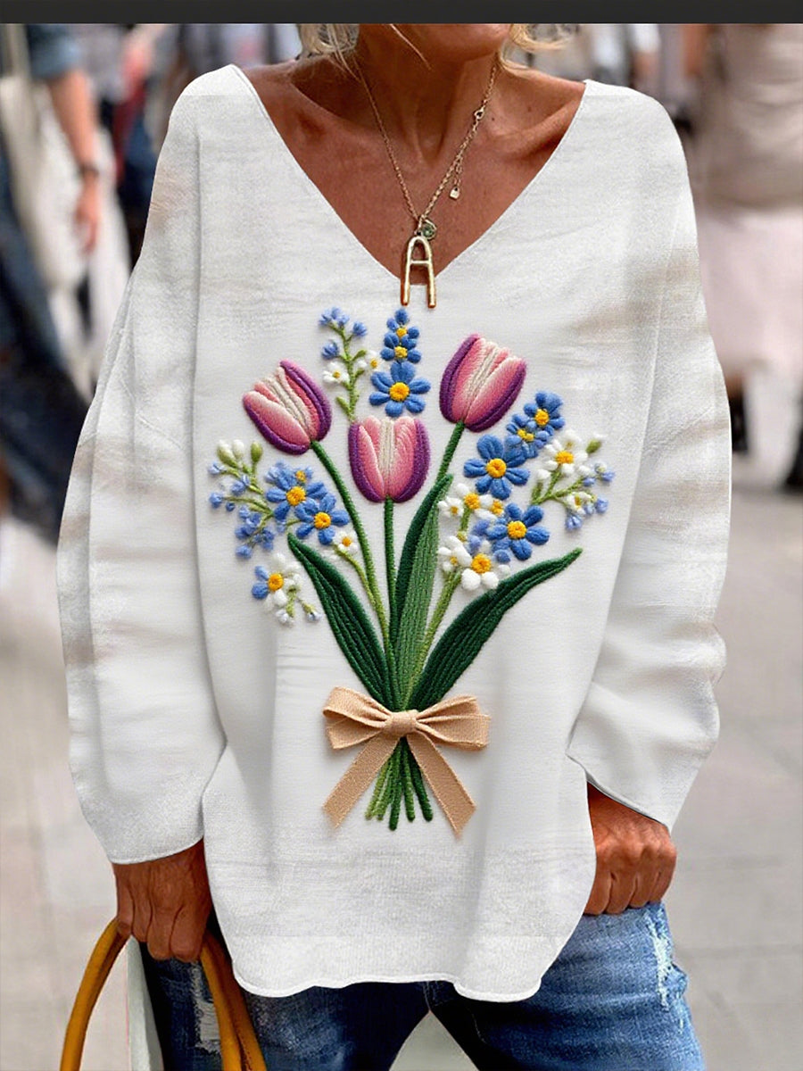 Női vintage virágos nyomtatás kényelmes alkalmi felső